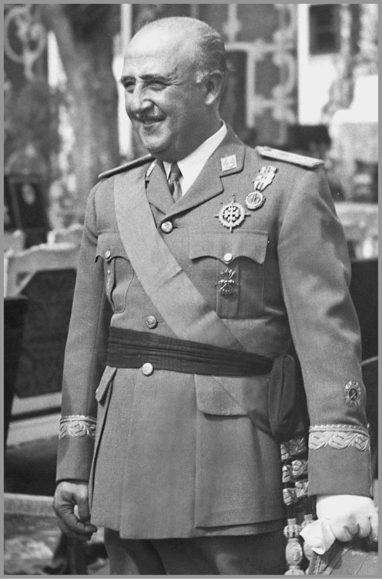 Франсиско Франко — испанский военный и государственный деятель, диктатор, глава Испанского государства с 1939 по 1975 год. Он неофициально носил титул каудильо (вождь) и был генералиссимусом. Франко пришёл к власти после победы в Гражданской войне в Испании, возглавив националистические силы, которые свергли правительство Второй Испанской Республики. Его режим был авторитарным и характеризовался подавлением политической оппозиции, ограничением гражданских прав и строгим контролем над обществом. Несмотря на экономическое развитие Испании в 1960–70-е годы, его правление оставило глубокие политические и социальные последствия для страны.