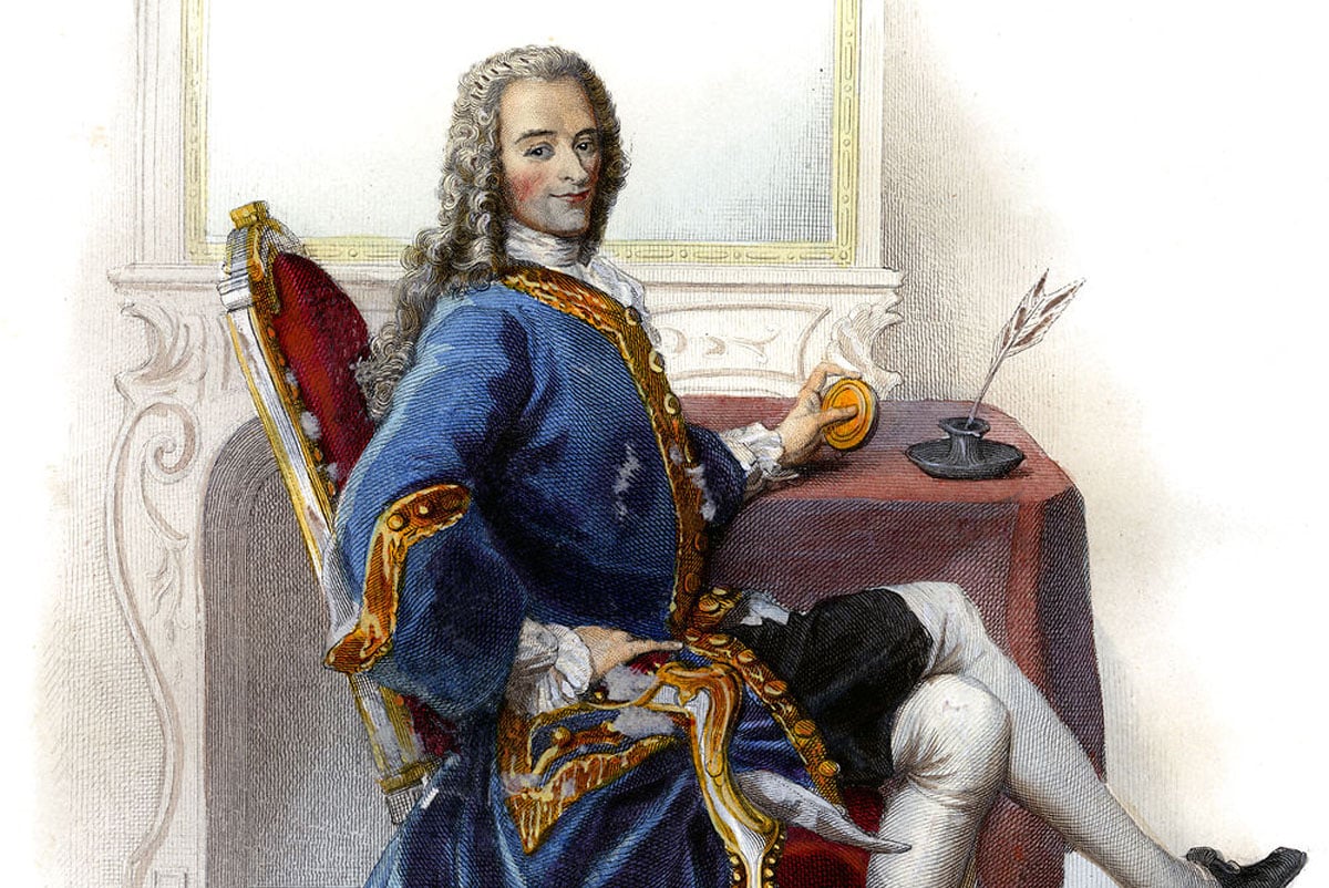 Франсуа-Мари Аруэ (псевдоним Вольтер) – французский философ, поэт и прозаик и просветитель, умело орудовавший словом, превращавший юмор в черную сатиру. Творчески подошел к выбору псевдонима, переставив местами слоги наименования города, в котором родился (Эрво: Air-vault).