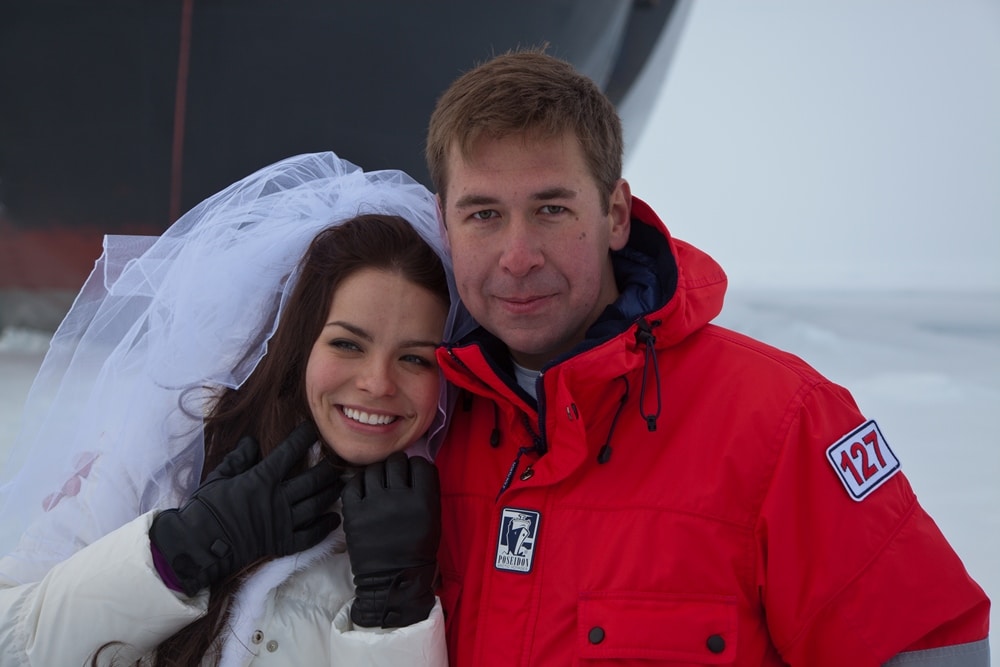 Интеллектуалы испытали взаимные чувства, у них были общие интересы, потому, посчитав, что они идеально подходят друг другу, мужчина в 2013 году сделал возлюбленной предложение стать его супругой. На что девушка -интеллектуал ответила согласием. Их свадебное путешествие было необычным, пара поехала на Северный полюс. Несмотря на то, что вокруг было много снега и ледяной ветер, на борту ледокола, носящего патриотическое название «50 лет Победы», пара отпраздновала церемонию бракосочетания, ведущим которой был капитан корабля.