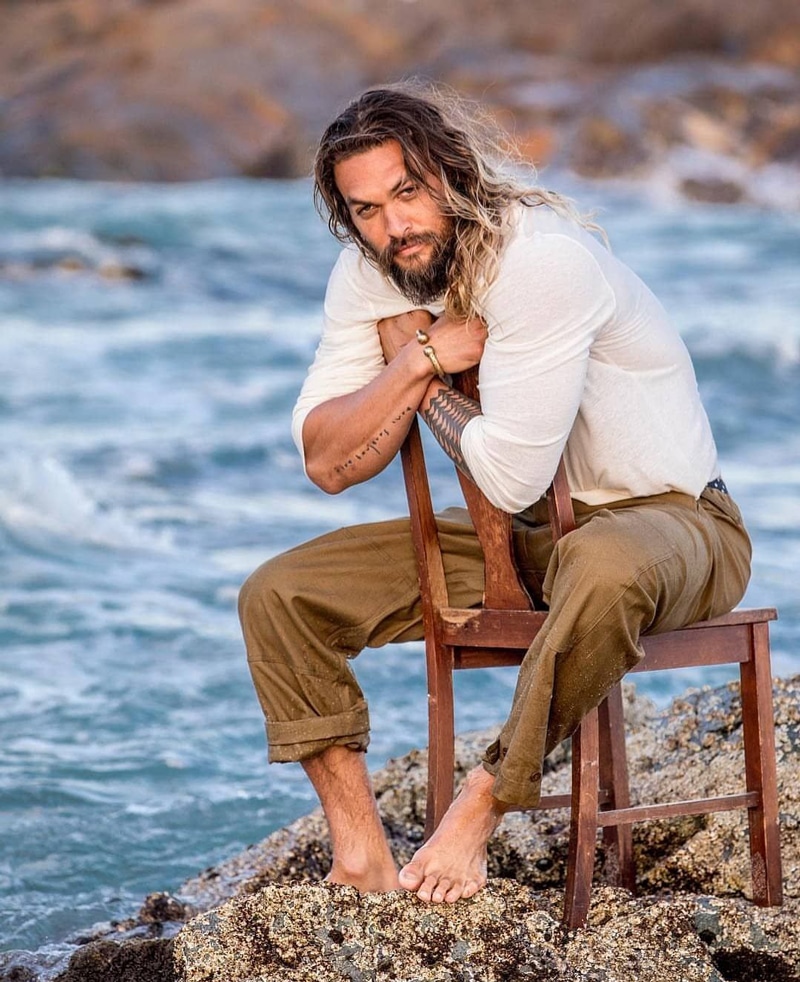 Долгие годы в образе Момоа присутствовали длинные волосы и борода. В 2019 году актер решил избавиться от бороды, но прическа по-прежнему остается неизменной. В основном брутальный мужчина носит распущенные волосы, но иногда заплетает хвостики или косички. В интервью журналистам не раз говорил, что длинные волосы – залог их семейного счастья с Лизой. Если он обрежет их, жена его выгонит из дома.