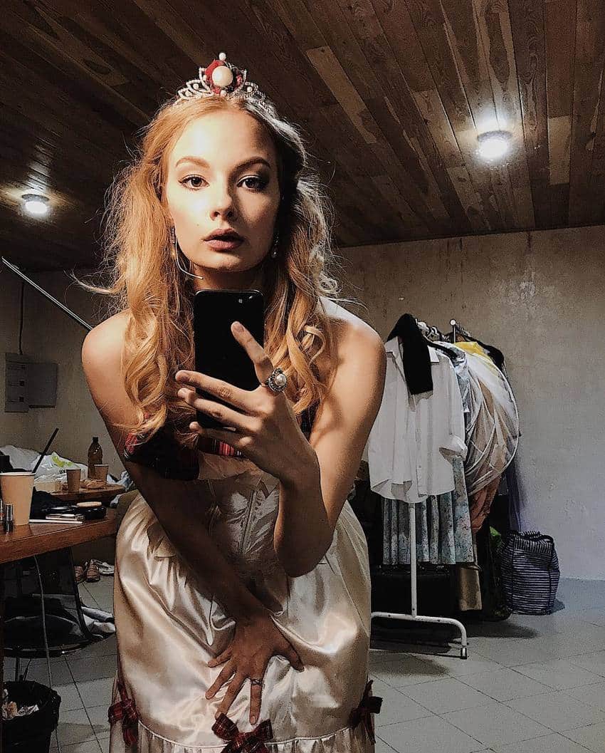 - В детстве девочка часто посещала «Современник», бывала за кулисами. Когда родители оставались на фуршет по случаю премьеры, девочка выходила на сцену и танцевала или занималась укладкой париков и другого инвентаря.